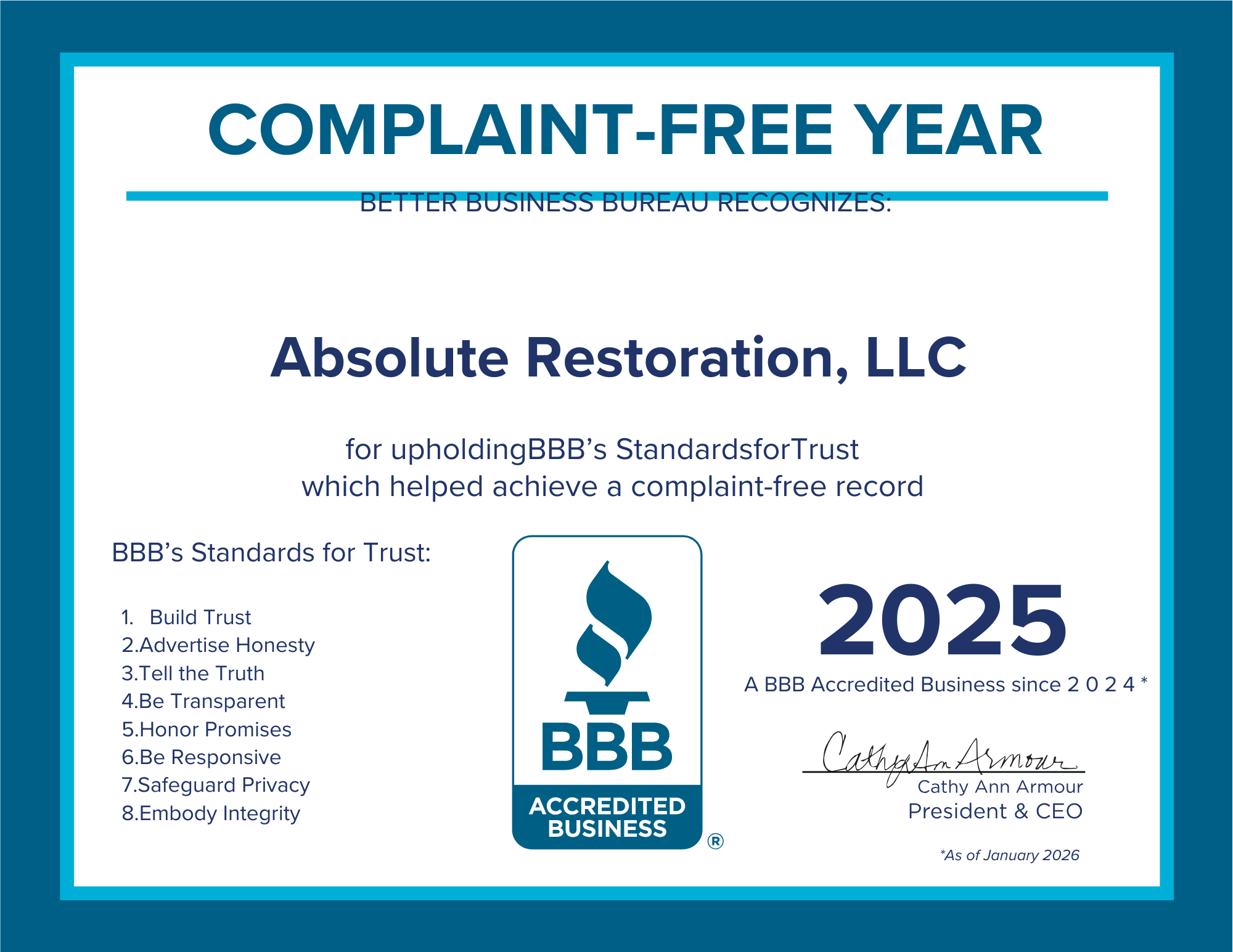 Indianapolis Restoration Company Absolute Restoration Named Complaint-Free by BBB